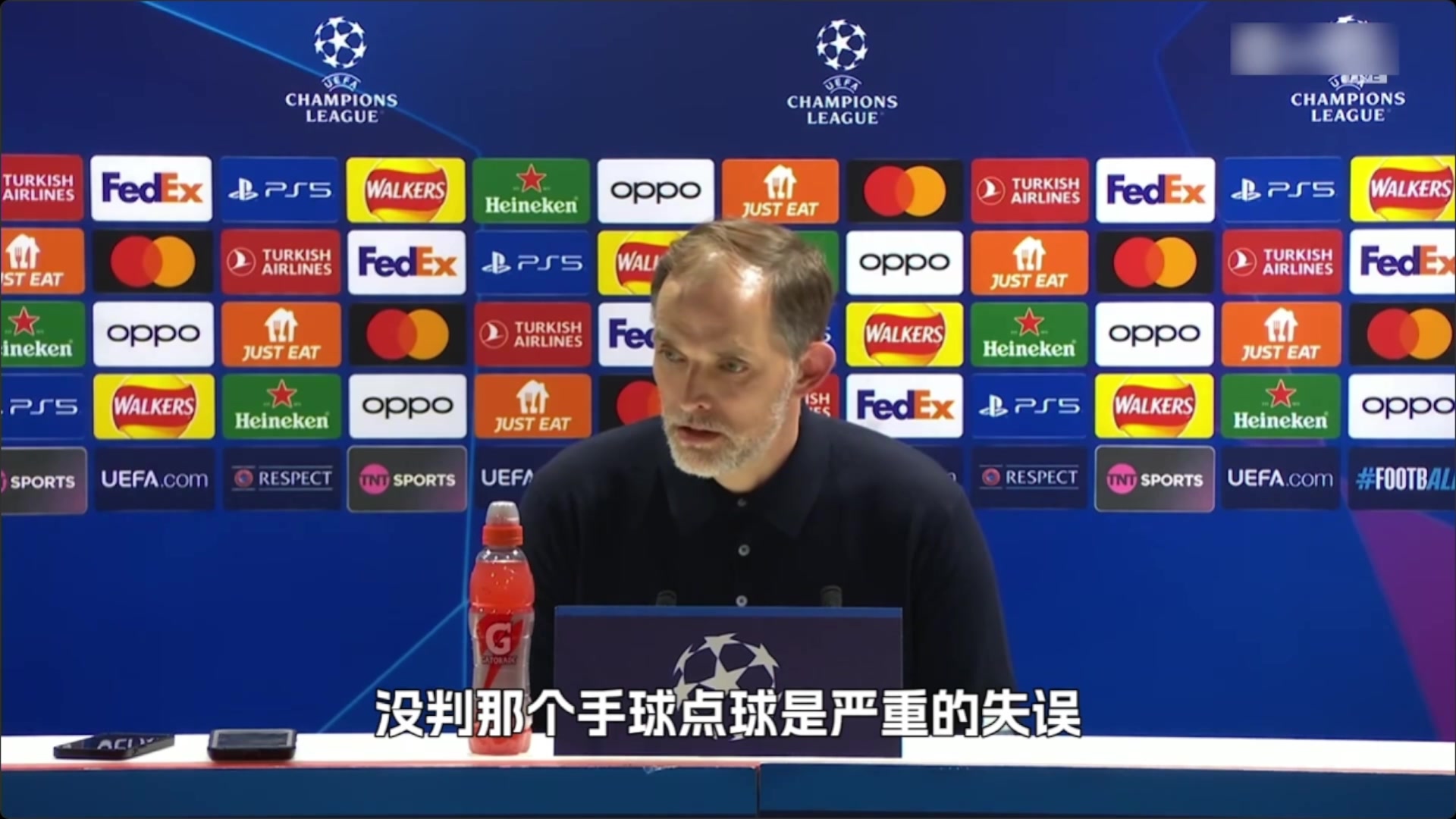欧冠加布用手拿球逃点 图赫尔愤怒裁判说这是小孩般的错误不判点